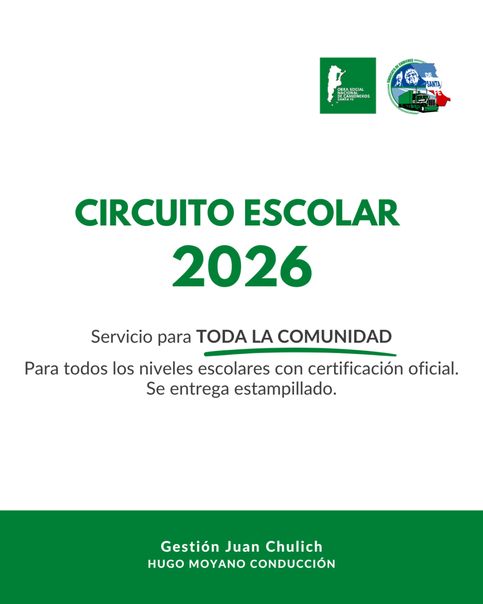 El Circuito Escolar es un servicio de la Obra Social de Camioneros de Santa Fe pensado para acompañar a las familias en el comienzo del ciclo lectivo. Está abierto a toda la comunidad: pueden acceder afiliados nuestra organización, personas con otras obras sociales, prepagas o particulares.
