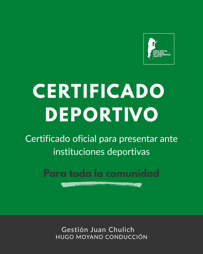 La Obra Social de Camioneros incorpora un nuevo servicio de Certificado Deportivo, destinado a quienes necesiten presentar la aptitud física ante clubes, gimnasios e instituciones deportivas.
